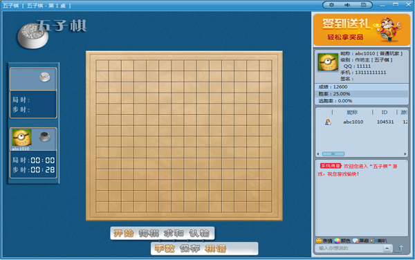 黑白双方依次落子,任一方先在棋盘上形成横向、竖向、斜向的连续的相同颜色的五个(含五个以上)棋子的一方为胜。